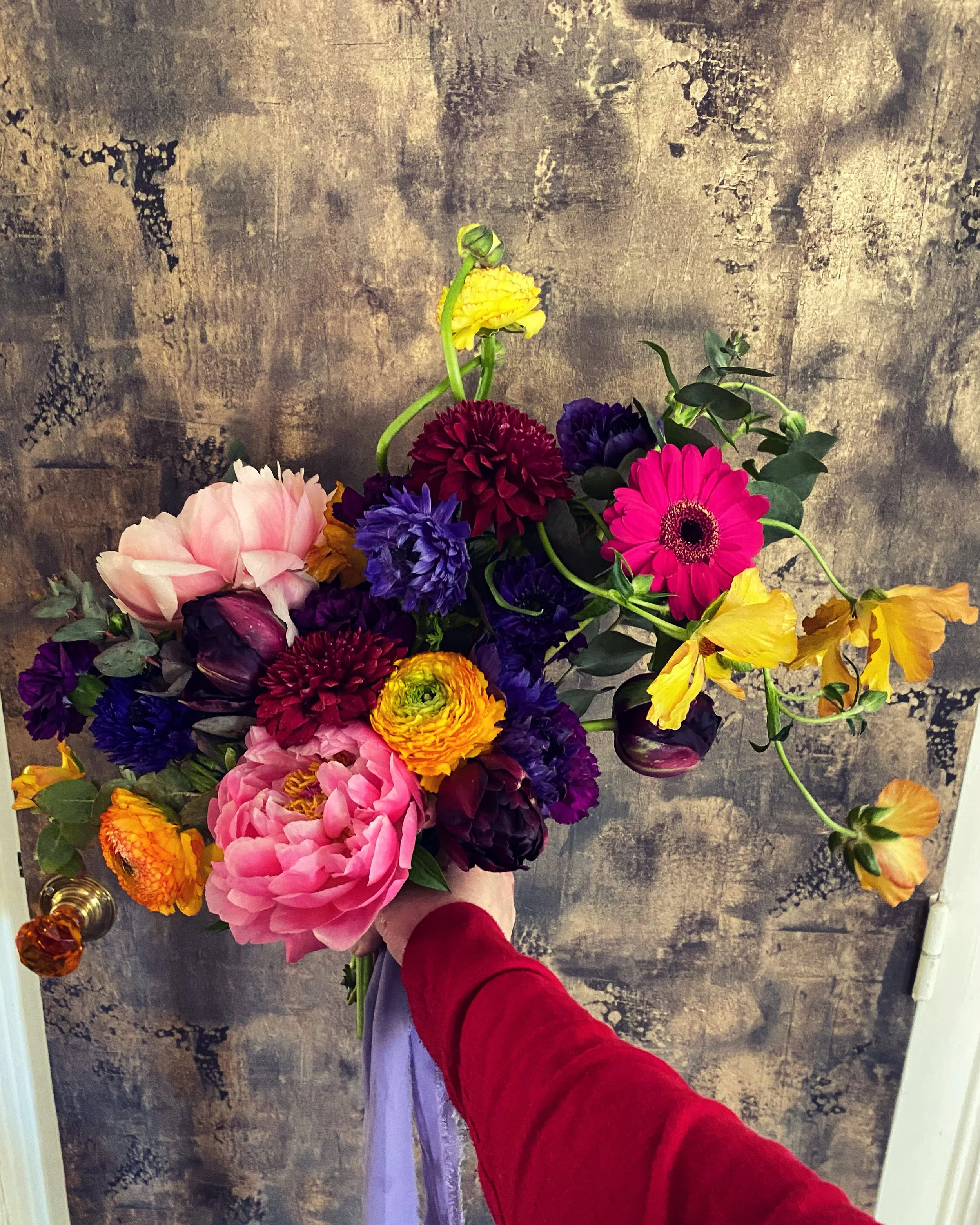 Au vu de l’impact écologique catastrophique de l’industrie de la rose rouge, en terme d’eau, d’énergie et d’utilisation d’engrais à la composition douteuse… nous avons choisi de vous proposer à la place des bouquets de fleurs de saison, des anémones, des tulipes, des renoncules…