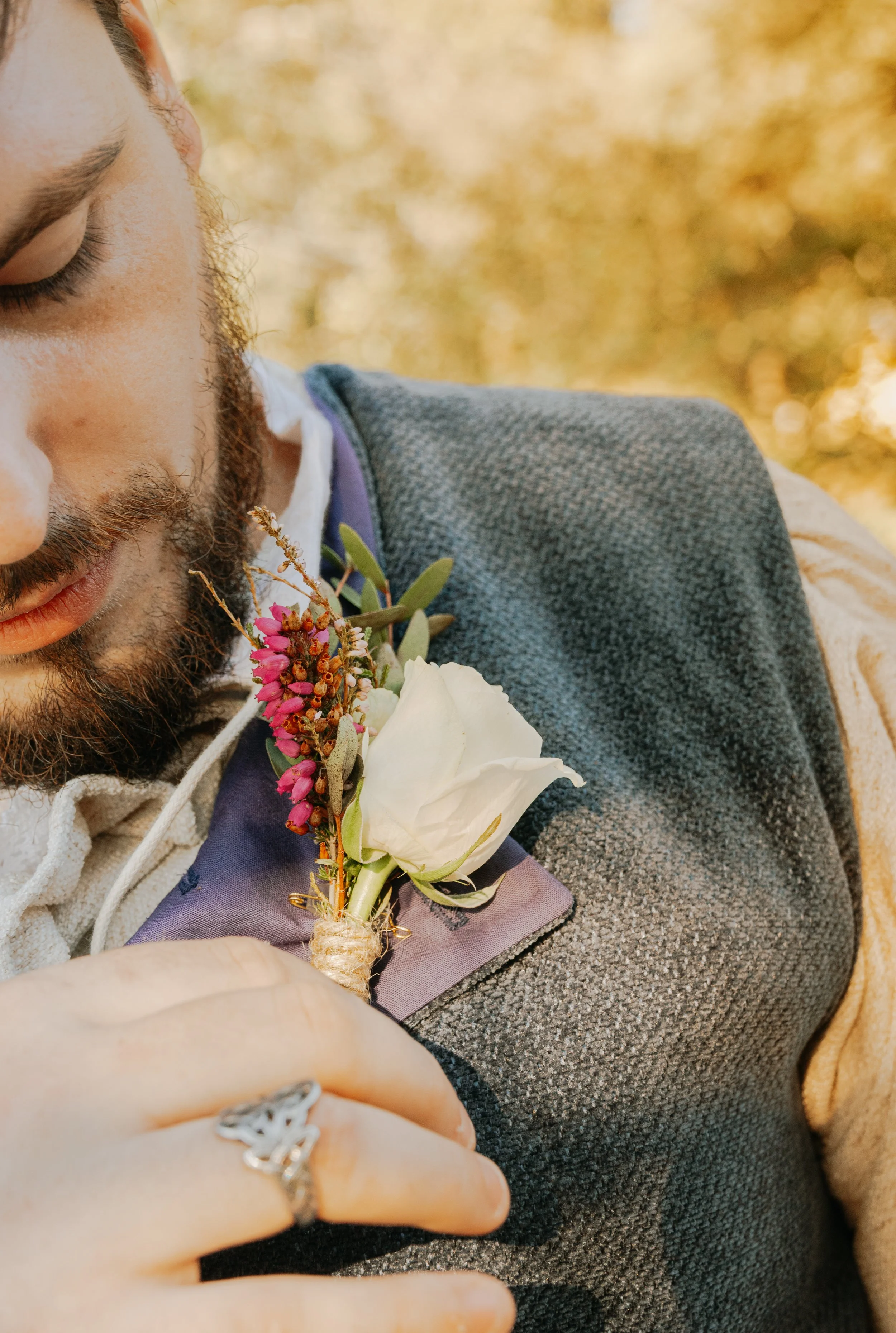 Une couronne nuptiale de fleurs fraîches sera portée par la mariée ainsi qu’une chevelure richement décorée. En effet, chez les vikings, les cheveux ont une symbolique très forte. Aussi il est primordial de les décorer pour le mariage.